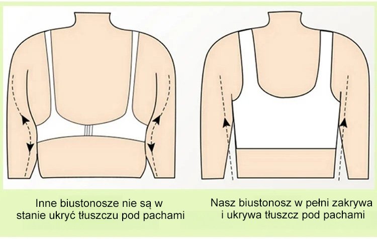 Snižuje laterální prsní tuk centralizací a plným pokrytím